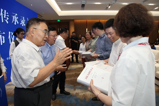 中国工程院院士、国医大师张伯礼等向国医大师工作室代表赠书。受访者供图