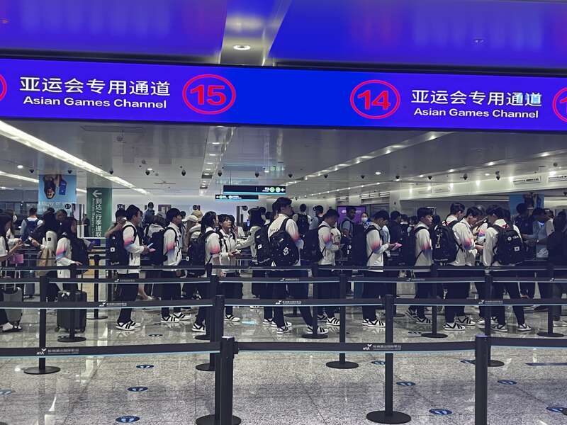 图十二:杭州亚运会运动员教练员创下单日入境最高峰。中青报·中青网记者 李剑平 摄