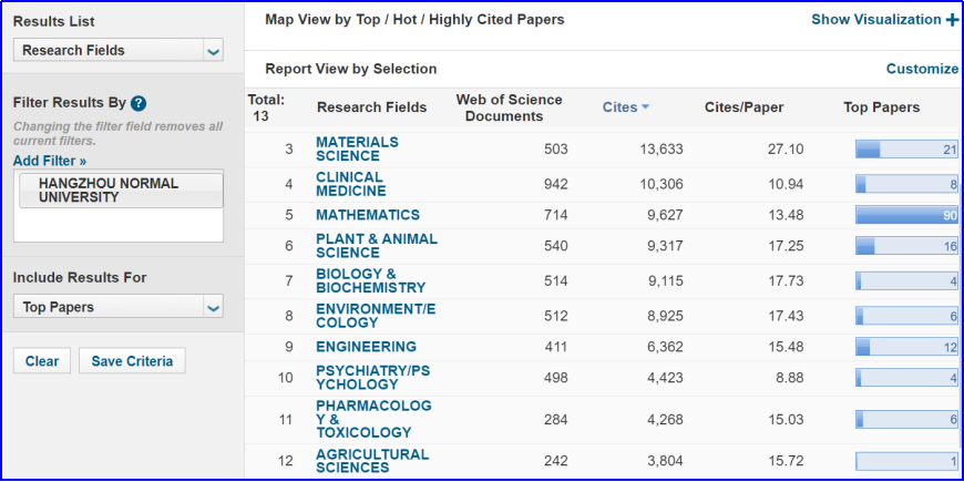 据统计,全球共有8786个研究机构进入全球前1%,杭州师范大学的国际排名为1313名,比上一期上升9名,入选论文总数10125篇,论文被引频次167304次,篇均被引频次16.52。本期高水平论文有225篇,其中高被引论文225篇,热点论文有15篇。
