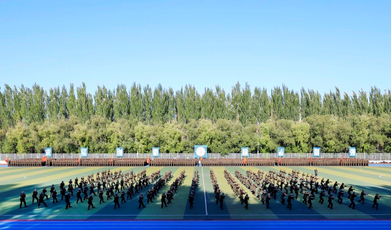 全体新生身着迷彩,步履铿锵,以崭新的面貌、奋斗的姿态和昂扬的斗志,展现吉大人“人比山高,脚比路长”的精神风貌,接受主席台上领导和老师们的检阅。同学们整齐的步伐、过硬的素质、威武的拳术和高昂的士气,彰显了新时代吉大青年奋进挺拔的风采。