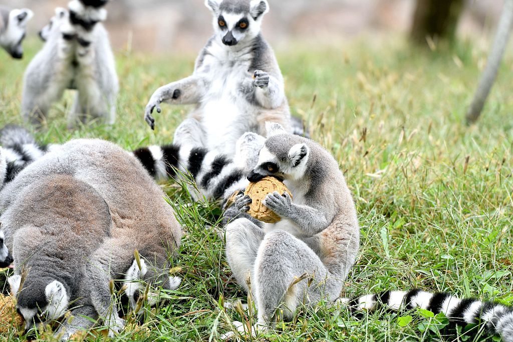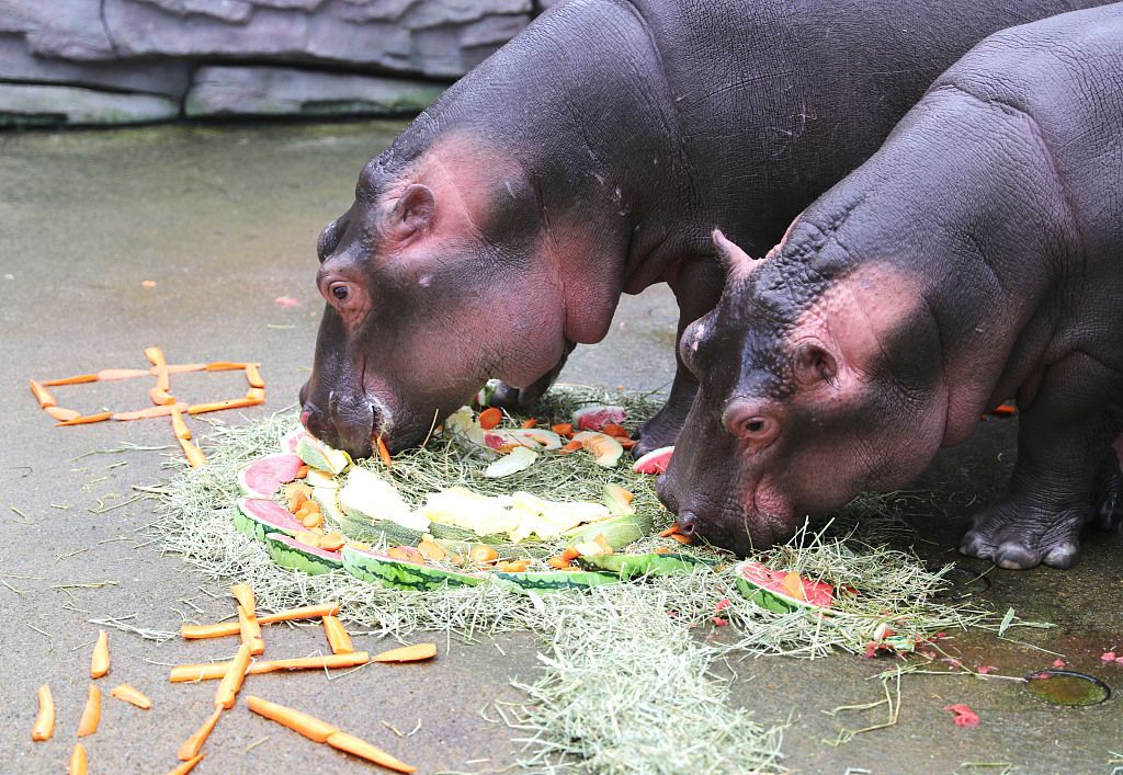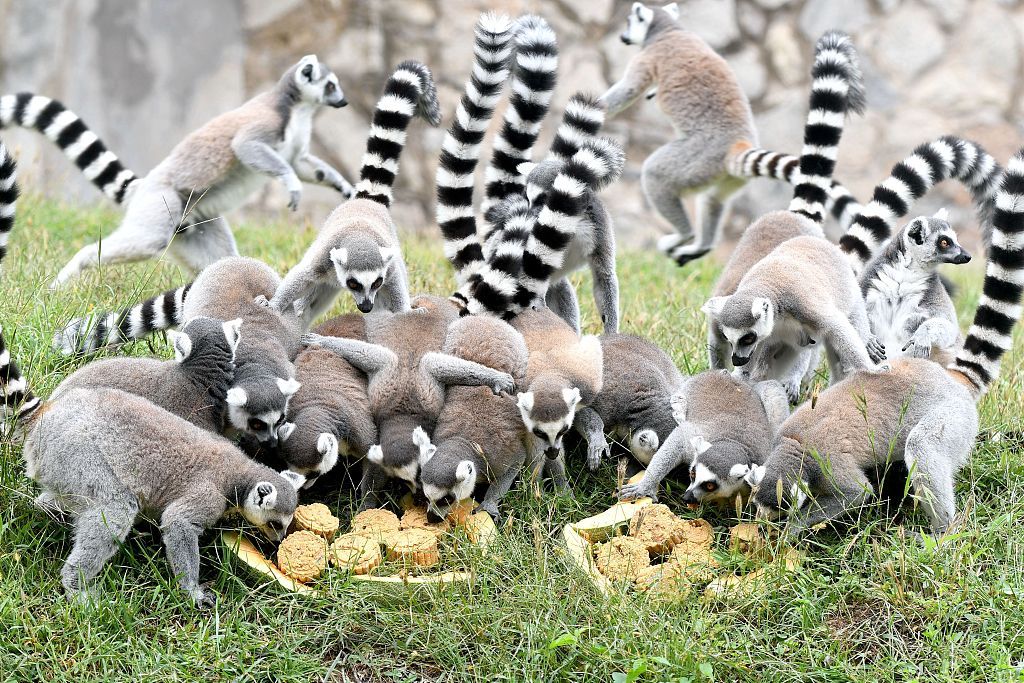 9月25日,在中秋节来临之际,山东青岛森林野生动物世界为亚洲象、河马、环尾狐猴等野生动物制作了月饼大餐, 让野生动物吃上专属月饼。