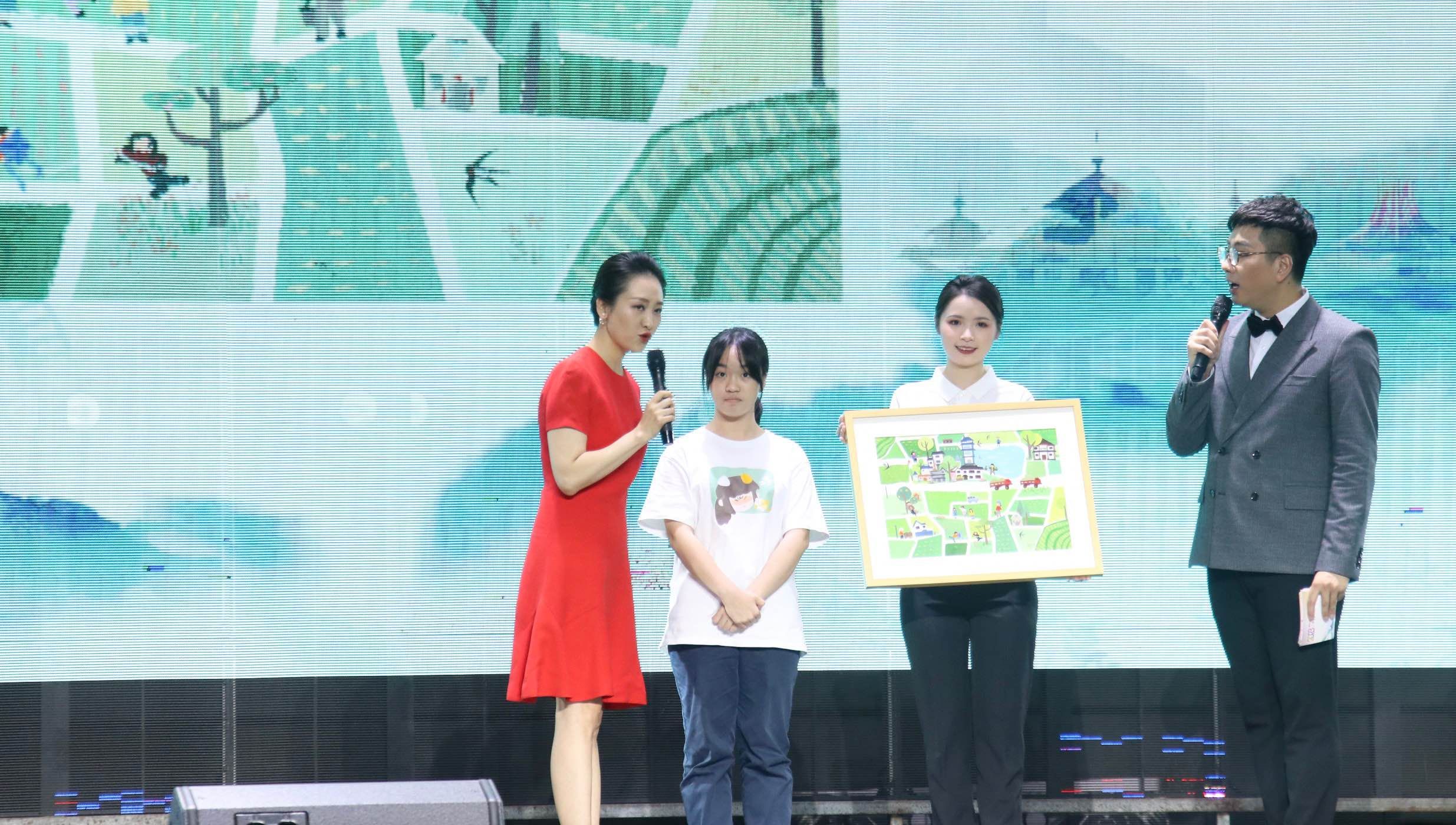 在大赛颁奖仪式上,来自美术专项赛少年组的黄子妍同学代表全体捐赠选手向广西青年志愿者协会捐赠获奖作品,广西青年志愿者协会为其送上了捐赠证书。