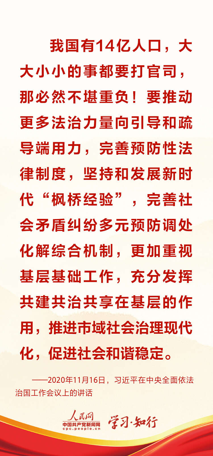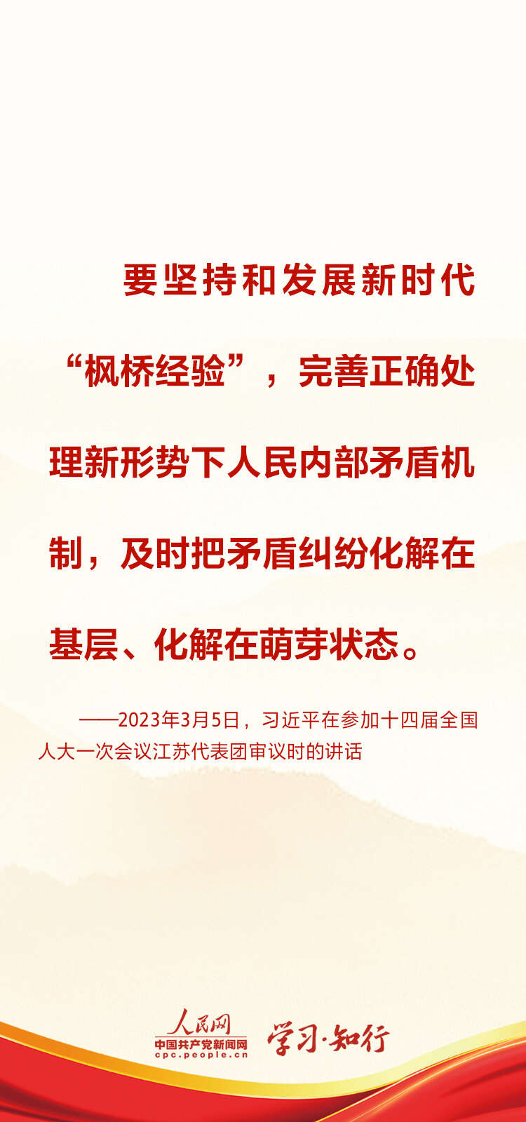 习近平多次对坚持和发展“枫桥经验”作出重要指示,推动新时代“枫桥经验”在基层社会治理中焕发勃勃生机。