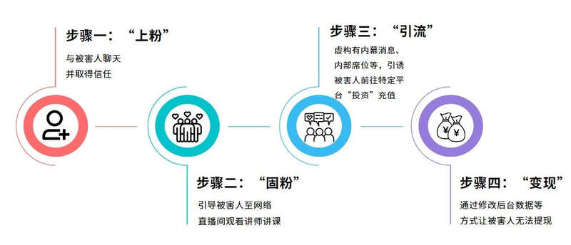 拿到“养好的”微信号,留守国内的引流团队便开始“上粉”,即将被害人“介绍”至业务员的微信号,业务员根据编写好的话术、脚本与被害人聊天并取得信任,以便接下来“固粉”,也就是引导被害人至网络直播间观看讲师讲课,而所谓的“讲师”均没有金融证券从业资格,甚至连基本的金融知识都没有。