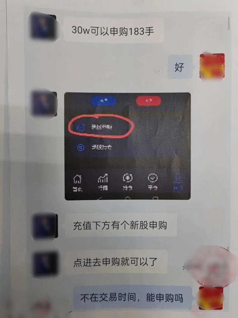 王女士平时热衷炒股,有自己的“股友圈”。最近有人介绍给她一位所谓“神人”,加微信后方称自己“有人”,可以轻松帮她打新股和推荐优质股,还让她加群分享强势个股、机构内部消息、私募打新策略,观看“内部”直播间、听投资“大神”讲解股票知识。甚至还能“帮你争取到机构席位账户”,而这一切只要通过自己推荐的平台就都能做到。