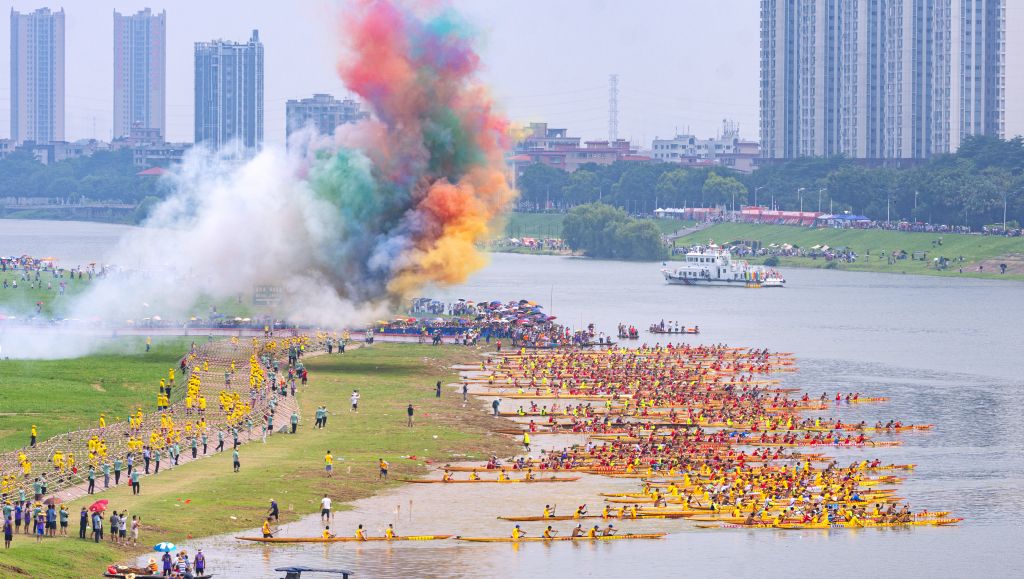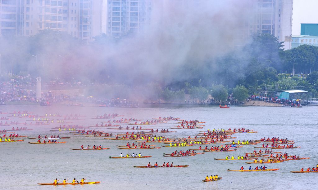 2023年9月29日,广东佛山,中秋佳节,南庄镇第十四届五人龙舟赛在吉利河段举行。本次大赛是南庄镇五人龙舟赛阔别五年后的强势回归,也是近年来规模最大的一次,将有约160支队伍,800人参赛。作为典型的岭南水乡,南庄镇历来有龙舟竞渡的传统。热闹非凡的南庄镇五人龙舟赛,全程约28公里,更有“龙舟马拉松”的美称。
