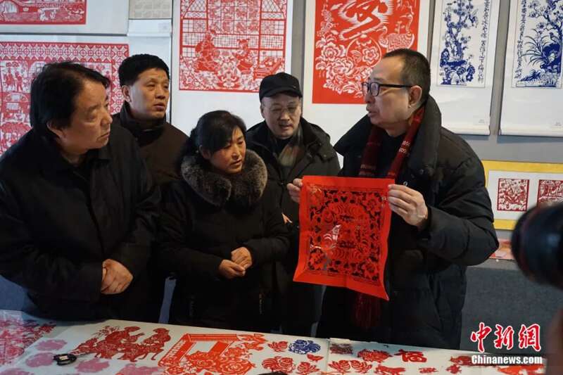 2018年2月,潘鲁生调研陕西榆林民间剪纸。受访者供图