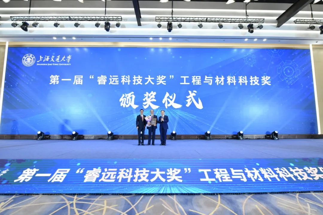 丁文江院士荣获第一届“睿远科技大奖”工程与材料科技奖。丁文江长期致力于先进镁合金材料及加工方面研究,创制了世界上性能最优、质量最轻、最耐热的镁稀土合金,建立了中国自主的镁稀土合金技术标准体系,率先实现了镁合金从非承力结构件至主承力结构件应用的颠覆性跨越,为我国新一代“大国重器”的研制做出了卓越贡献。凌文宣读颁奖词,杨振斌、陈光明为丁文江颁发获奖证书。