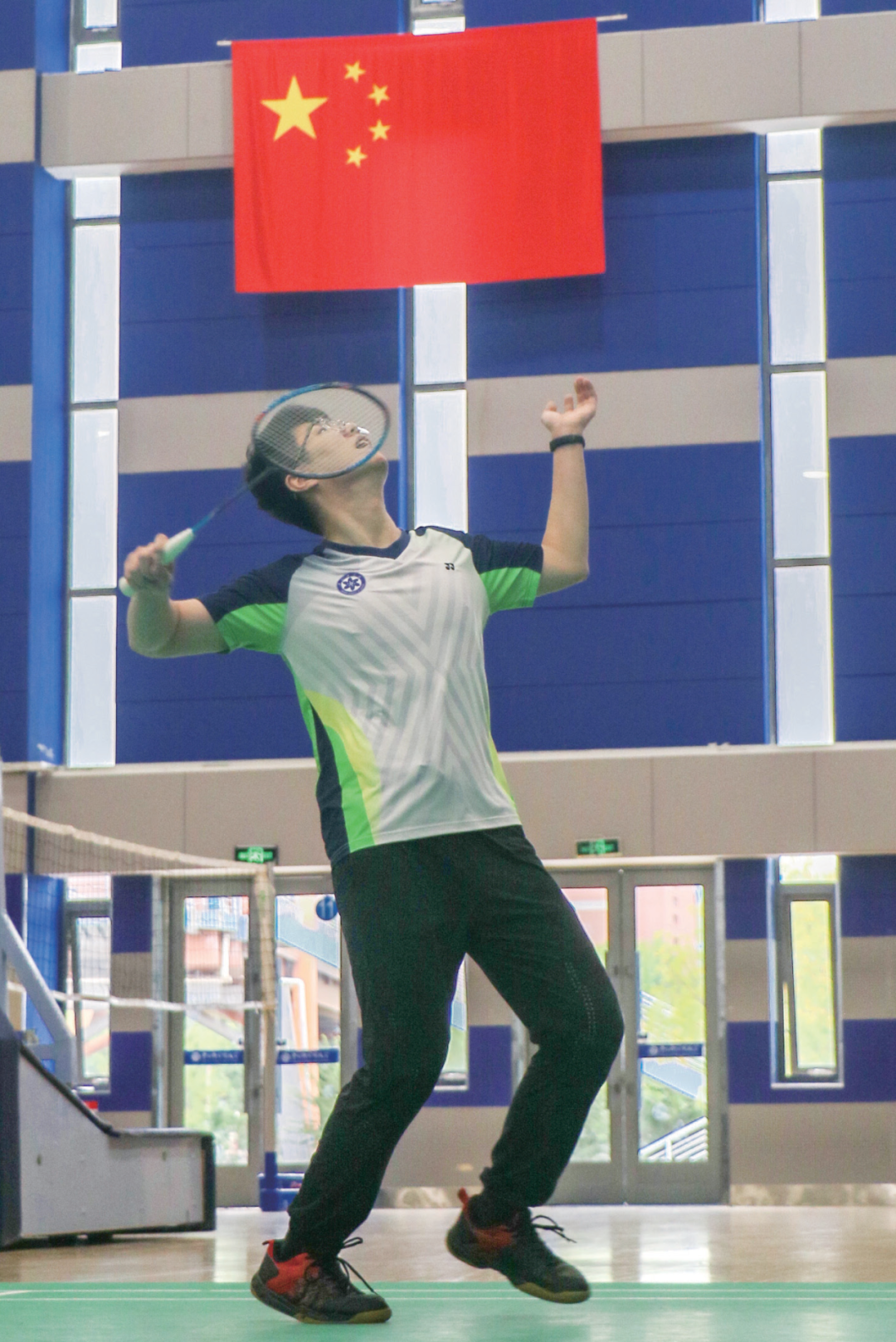 孙国栋在雁栖湖校区体育馆打羽毛球
