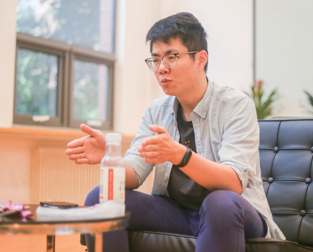 国庆假期的第二天早上,晨光透过窗户散落在学园楼的一层大厅,在这个宽敞明亮的公共空间中,孙国栋坐在黑皮沙发上如是说。