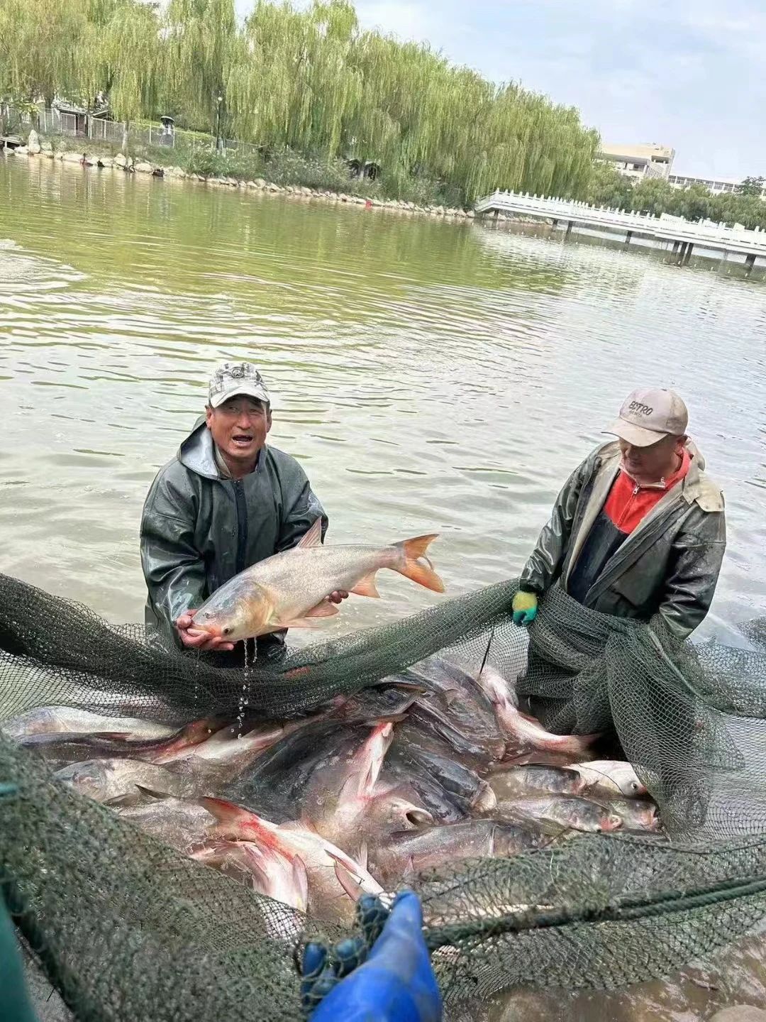 9月28日中午,北方民大后勤工作人员身穿防水衣,在明湖撒网捕鱼,“围捕”各种鱼类1300余斤,共享丰收的喜悦。捕鱼时,明湖两岸围满了师生,湖心岛的候鸟在上空一圈圈盘旋。当大网慢慢收拢,草鱼、鲢鱼、雄鱼等尽收网中。师生举着手机,按下快门,被这壮观的一幕所震撼。随后,捕获的大鱼被送往各个餐厅,将由食堂大厨们做出各种美味佳肴,免费供师生们享用。