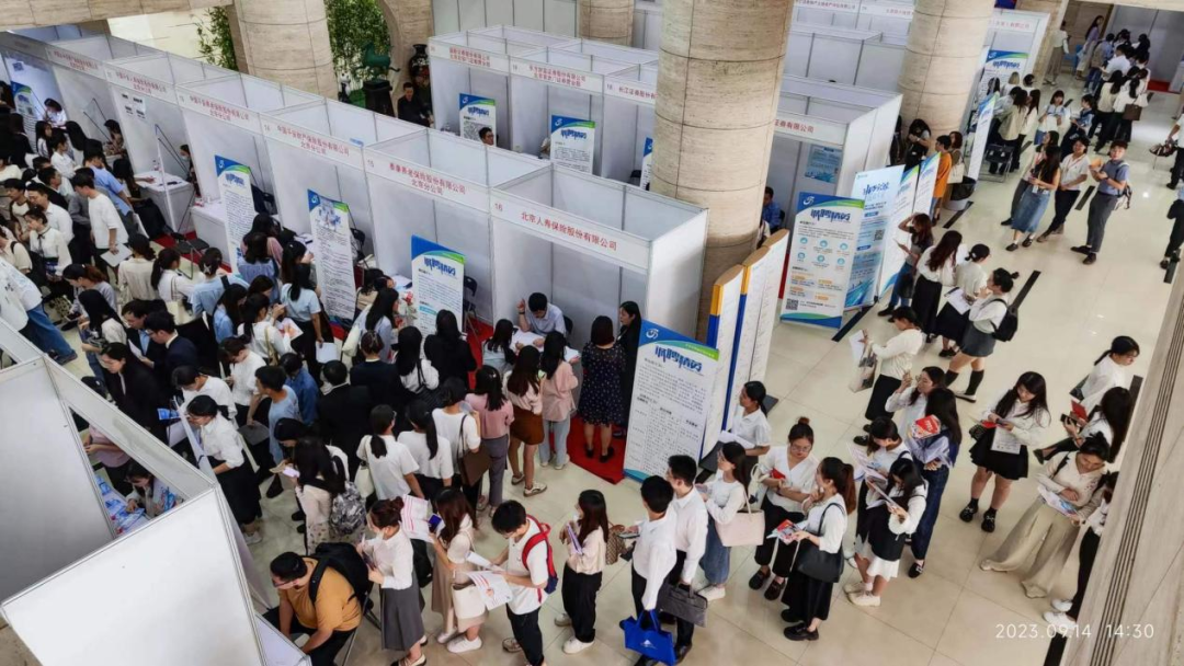 2024届秋招已拉开帷幕,我校2023年“求职服务季”首场招聘会“2024届秋季首场西城区专场招聘会”于9月14日下午在宁远楼一层大厅顺利举办,工商银行北京市分行、中信银行北京分行、申万宏源证券公司、中联资产评估集团等39家优质企业参会,参会学生达1100余人。招生就业处连英青处长、朱庆副处长到场与企业和毕业生交流。