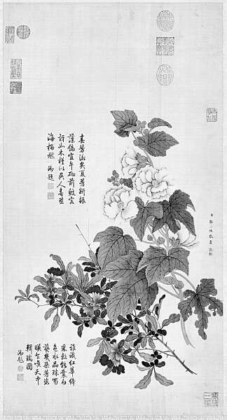 蜀葵石榴轴 (清)邹一桂选自《唐诗物候》