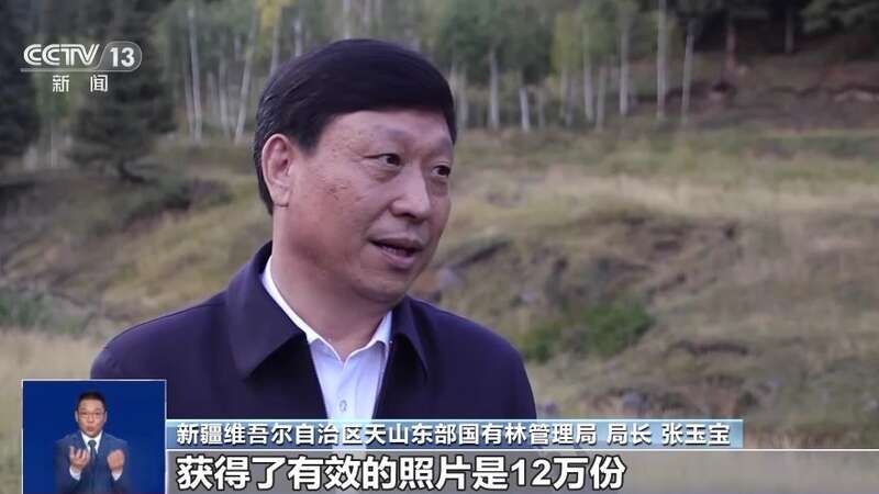 新疆维吾尔自治区天山东部国有林管理局局长 张玉宝:我们回收了350多台红外相机的数据,获得了有效的照片是12万份。经专家的评估和论证,我辖区应该有200多只雪豹。