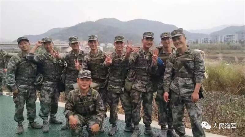 ▲王士豪(前排)第一次入伍与火箭军战友合影