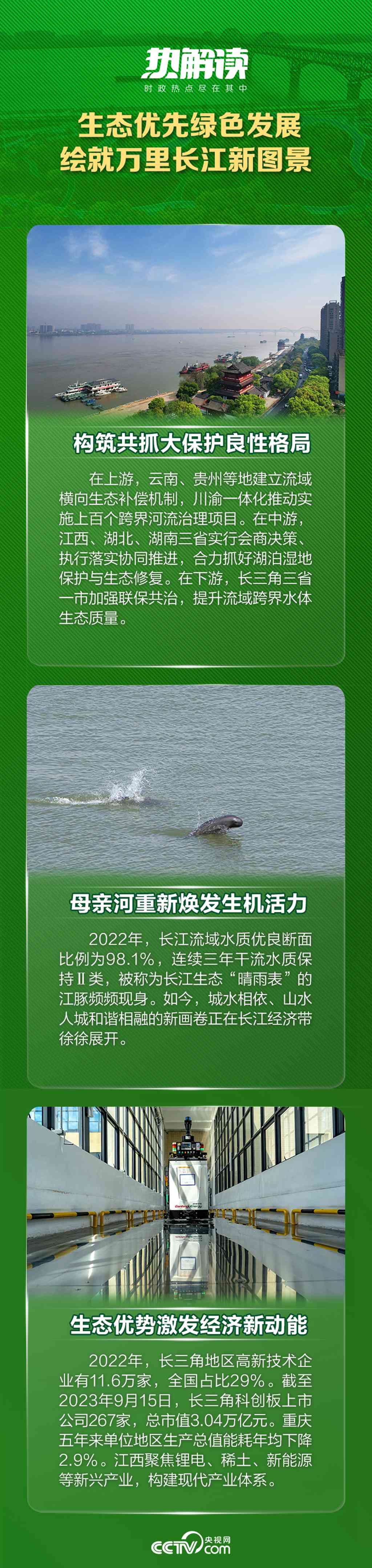 从“共抓大保护、不搞大开发”,到承担起“主战场、主动脉、主力军”的新历史使命,生态优先、绿色发展的理念已在长江经济带沿线各省市落地生根。