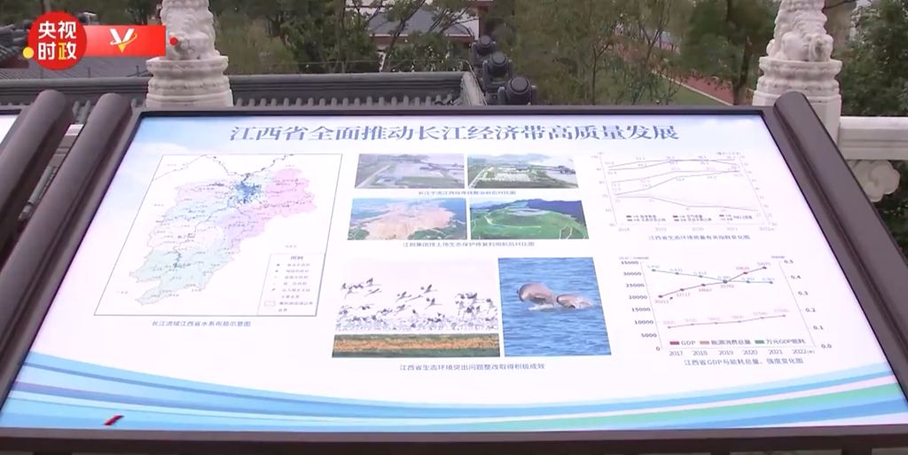 考察当天,在“江西省全面推动长江经济带高质量发展”的展板前,总书记看到了这样几幅照片:荒滩江堤变公园绿地,原本“灰头土脸”的排土场如今一片青绿,江水滔滔豚跃鸟翔……各项喜人的数据背后折射出江西全流域生态向好之变。