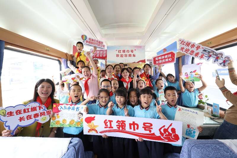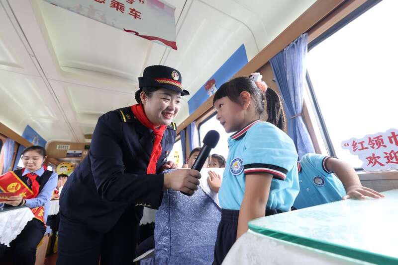 在10月13日第74个少先队建队日来临之际,中国铁路南昌局集团有限公司、江西省少工委依托“红领巾号”列车流动教育阵地,联合南昌市铁路第一学校铁路校区组织30余名少先队员登上列车,在“红领巾号”列车上开展建队日活动。