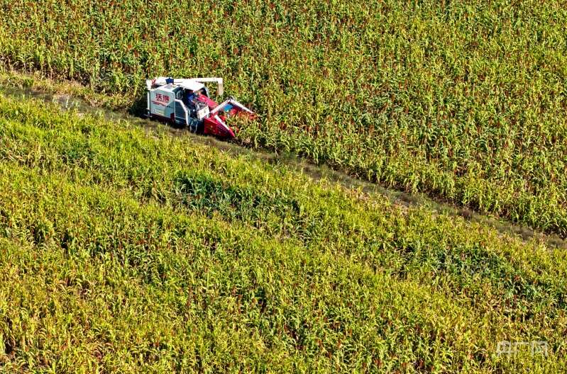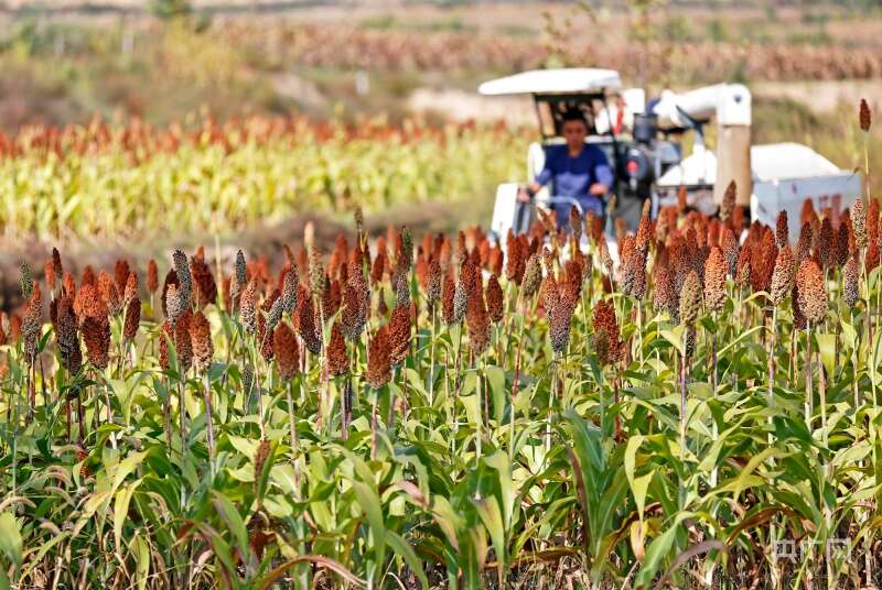 央广网临汾10月14日消息(记者任重)当前正值高粱成熟季节,在山西临汾市襄汾县古城镇盘道村,随处可见的火红高粱穗压弯枝头,株株颗粒饱满,在阳光下分外耀眼。当地种植户抢抓晴好天气,按照高粱成熟程度分批次进行采收、晾晒、销售等一系列作业,田间地头一派忙碌的丰收景象。