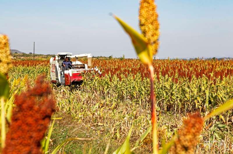 火红的高粱穗压弯了枝头(央广网发 李现俊 摄)