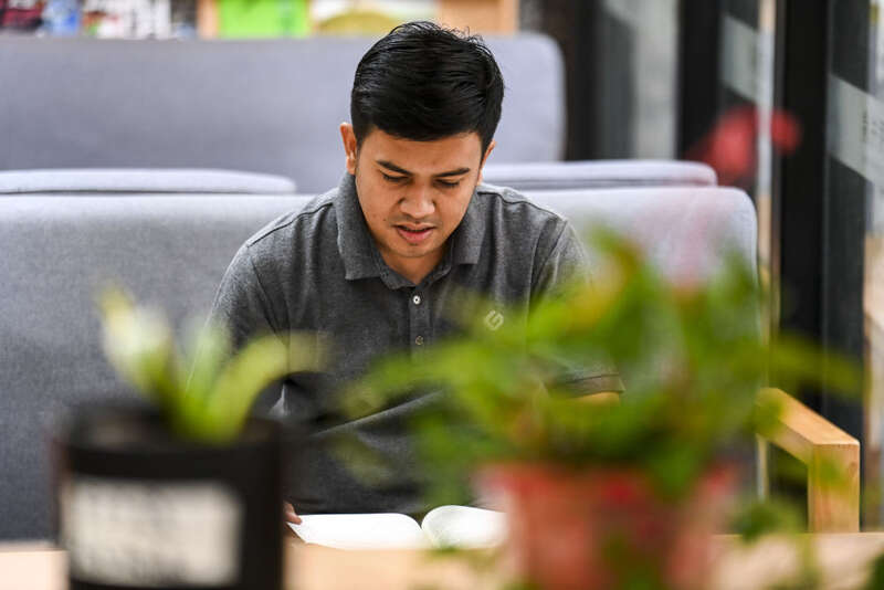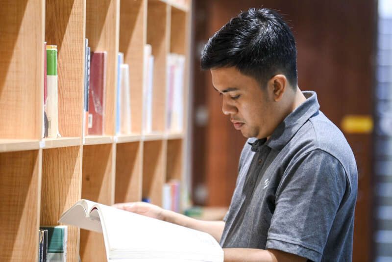 ↑10月12日,在广西艺术学院,仁迪在图书馆内查阅资料。