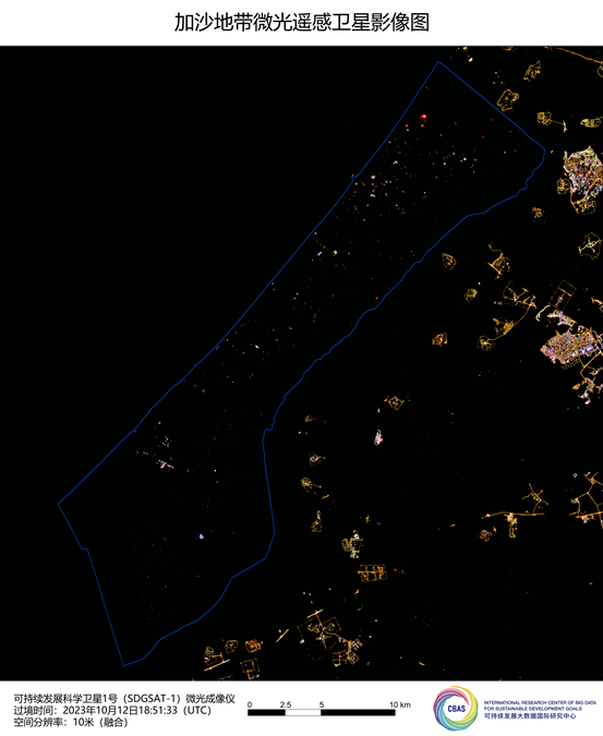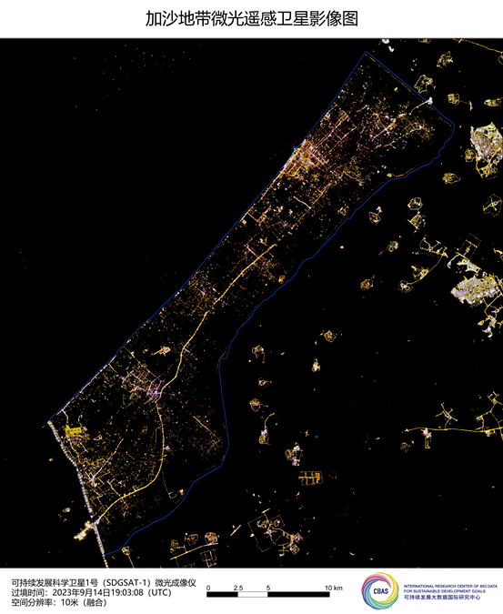 公开资料显示,加沙地带是一块长41公里,宽6到12公里的狭长地带,在总计约365平方公里的土地上,生活着200多万人口,绝大部分为巴勒斯坦人。这里是全世界人口最稠密的地区之一,人口密度和西班牙马德里和英国伦敦相当。利用SDG中心可持续发展科学卫星1号的微光成像仪,在当地时间9月14日晚10时左右拍摄的加沙地带夜景图像显示,在此轮巴以冲突之前,整个加沙地带的夜晚灯火通明,这也直观反映了该地区的人口稠密程度。