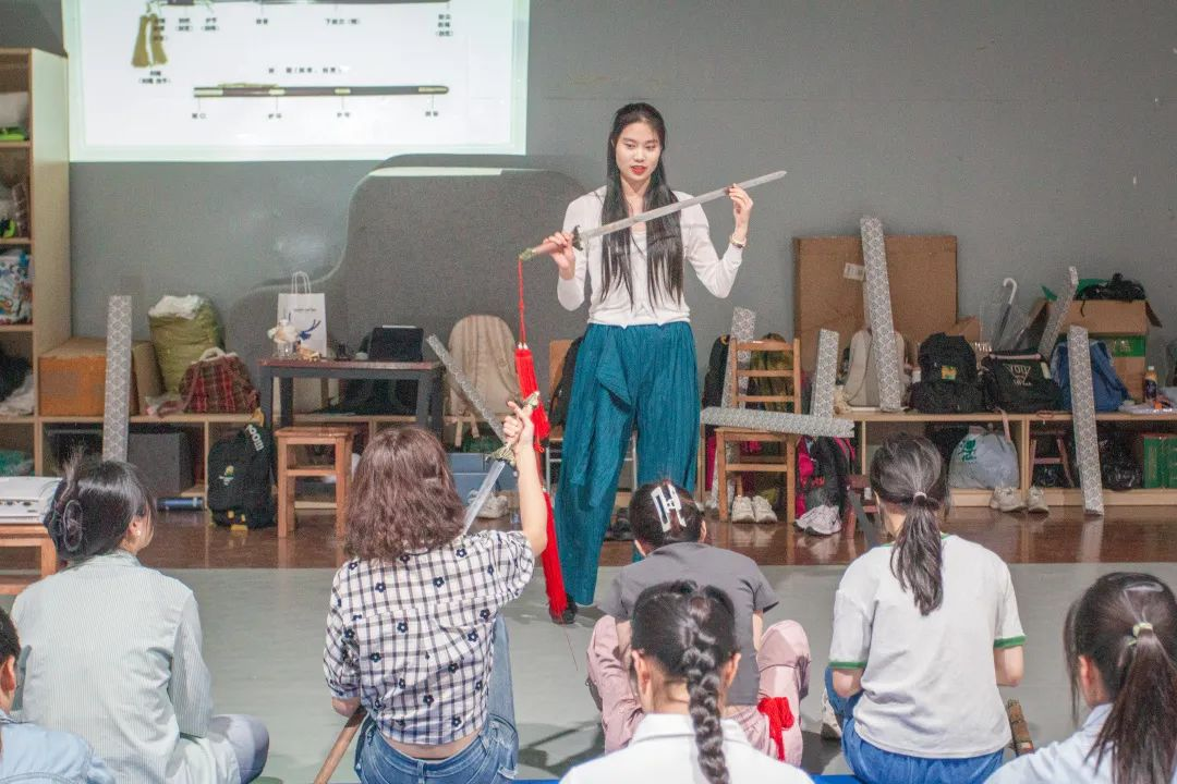 “让我印象最深刻的是在古典舞的学习中,朱老师会让我们模仿古画、陶俑的形态,吟咏诗词歌赋,从深层次剖析中国古典舞的动作要求。”2022级本科生邓睿凝谈到上课感受时不由地感慨。对于这种新奇的教学方式,朱月解释道:“在模仿唐代陶俑反C和S型曲线的体态时,我们需要做出夸张的顶胯动作,在这之中就能感受到盛唐文化的开放风气。又如在模仿《牡丹亭》古画中杜丽娘的姿态时,我们将男女扯帕的图像动态化,也就更能体悟角色内心的情愫。”