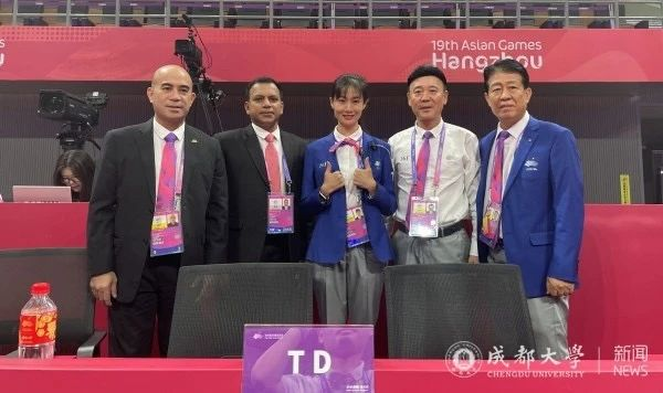 在刚刚结束的杭州第19届亚运会中,我校体育学院跆拳道国际级裁判康伟老师代表四川出任跆拳道项目国内技术官员。文沫霏老师参与马术项目承办,在亚运会桐庐马术中心运行团队中负责外事接待工作。