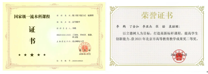从教二十年,李鹤先后主讲《高等数学》《数学分析》等基础课,近三年年均主讲本科课程超350学时。通过积极参与课程建设,大胆创新实践,努力提高教学质量,用行动赢得了学生们的信任与喜爱,她负责的《高等数学》被认定为国家级一流本科课程;主讲的《数学分析》被认定为首批北邮建设的15门高新标杆课程之一,并被评为北京市优质本科课程。