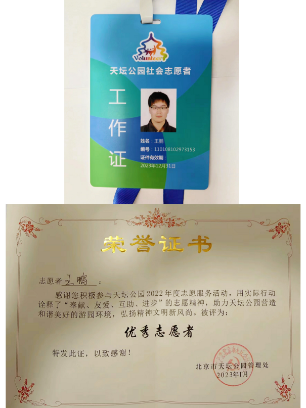 除了捐献造血干细胞和捐献头发,王鹏已将奉献爱心内化于他日常生活的点点滴滴。王鹏不仅连续8次捐献全血,还是“志愿北京”的一名志愿者,会定期参加天坛东门献血车志愿服务和天坛公园社会志愿者服务,这已成为他工作之余首要的爱好,“对我来说,定期参加志愿服务活动,既是奉献爱心也是很好的解压方式。”