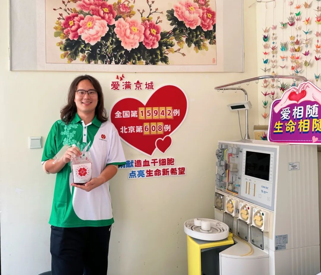 随着造血干细胞采集室内分离机“嘀”的一声,经过四个小时的采集,王鹏顺利完成了造血干细胞捐献,成为北京市第608例非血缘造血干细胞捐献者。“希望我的造血干细胞能够帮助到和我配对移植的这位同龄人,我听说有的患者因为复发或康复情况不理想需要二次捐献,如果出现这种情况,我也做好二次捐献的准备,既然帮就帮到底”王鹏如是说。