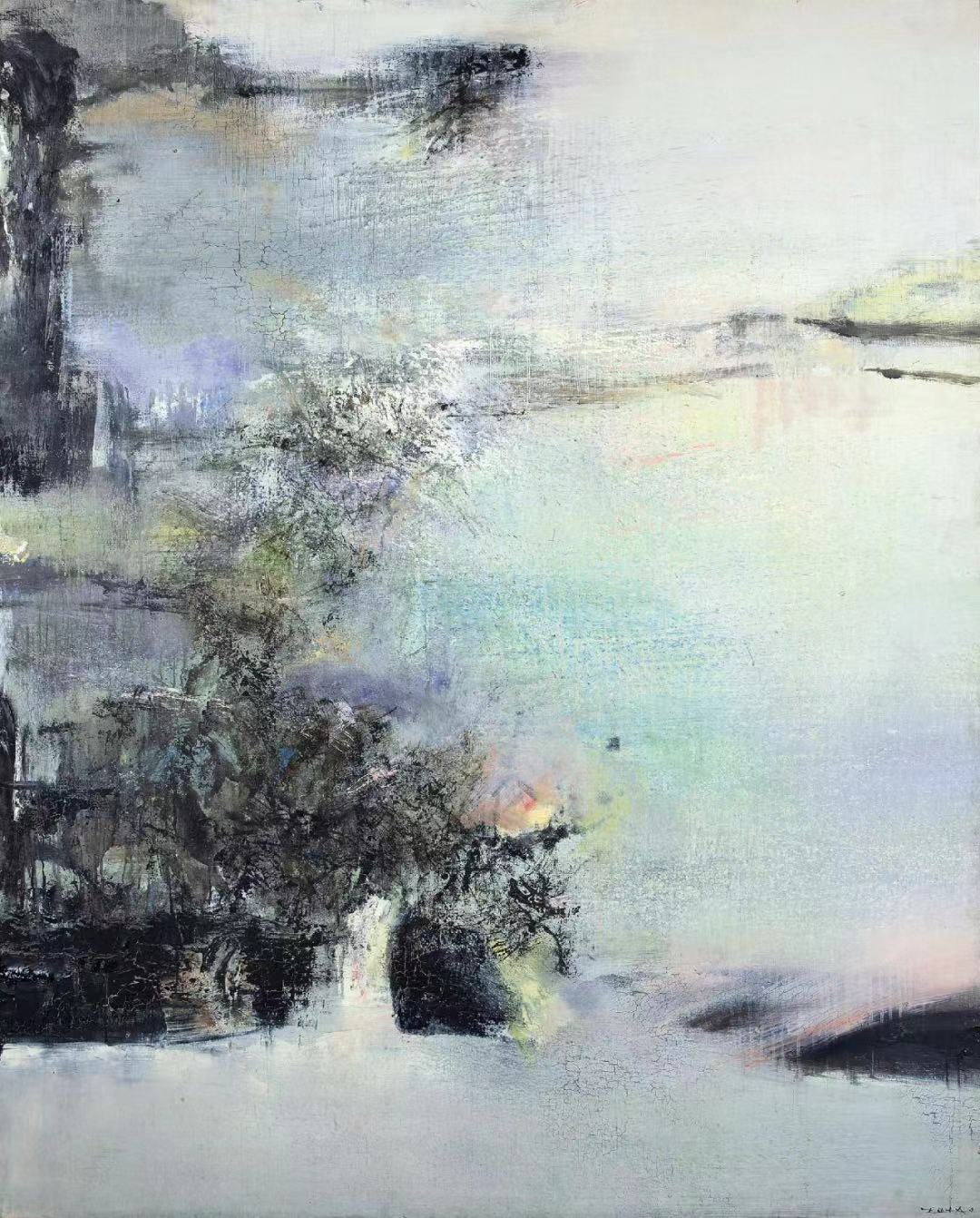 背景成为空间,这一步的重大意义。最重要的是,这一符号变成形体、背景成为空间的过程,恰恰伴随着文字让位于自然元素的过程。大自然,开始重新以一种全新的方式,进入绘画。皮埃尔·卡巴纳(Pierre Cabanne)在解释“抒情抽象”产生的前提时,敏锐地指出,无论是马蒂斯还是毕加索,尤其是立体派,他们的创新行为都建立在都市经验之上。即便是塞尚、梵高,他们笔下的自然也是欧洲大陆的自然,绘画中始终缺乏一种真正的、堪称大自然的辽远、宏伟景象。抒情抽象正是对这样一种虽然打破了传统的透视法、却依然有所限定的空间的突破。现代绘画在呼唤它的“新大陆”。赵无极带来的中国空间,为打破这种现代都市空间以及建立在这种经验之上的现代绘画空间,带来了无穷的可能性。