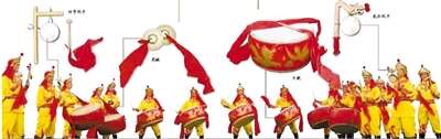 李双义告诉记者,白纸坊挎鼓,声势浩大、气势磅礴、浑厚洪亮而且不躁不乱。白纸坊挎鼓表演时,少则十几人,多则二三十人,由8到10面大鼓、两对龙头沉子、两对竹节沉子、四副花钹组成。每人都将鼓绊斜搭在肩上,下系一面直径二尺七的大鼓,鼓帮子置于胯部或大腿中间,左手扶鼓,右手拿槌击鼓,或击鼓面,或击鼓帮,再配以沉子、铙钹。 “挎鼓所表现出来的那种声势、气势、阵势是任何一档香会都不具备的。也因此,自古就有‘神胆来蹲底,幡鼓齐动庆太平’的说法。”