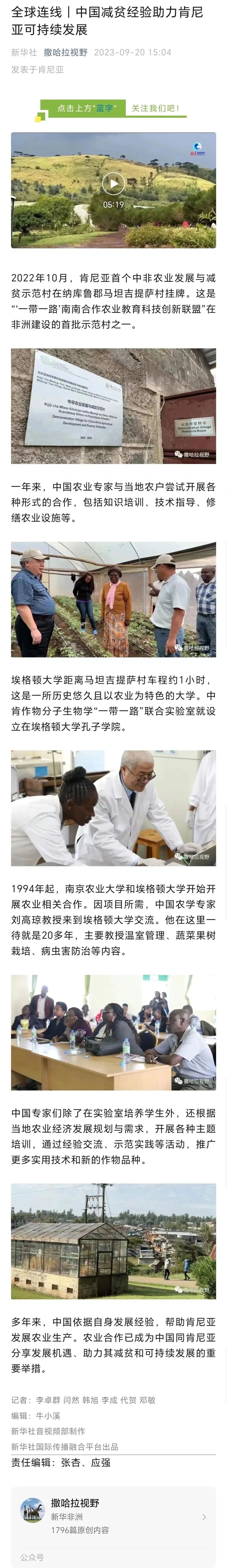 新华社、央视新闻、人民网、中国日报等多家主流媒体聚焦30年来南京农业大学深耕对非农业科教合作工作。
