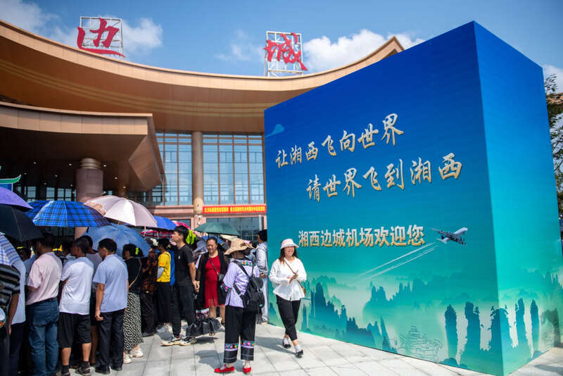 今年8月18日,湘西边城机场正式通航。当天,杨超文早早赶到机场,等待飞往北京的航班,他第二天清晨要去天安门广场观看升国旗仪式。