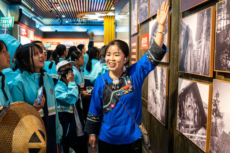“变化”是施艳琴解说中的高频词。苗乡人曾陷于贫苦,她说起当年的顺口溜:“三沟两岔穷旮旯,红薯土豆苞谷粑,要想吃餐大米饭,除非生病有娃娃。”