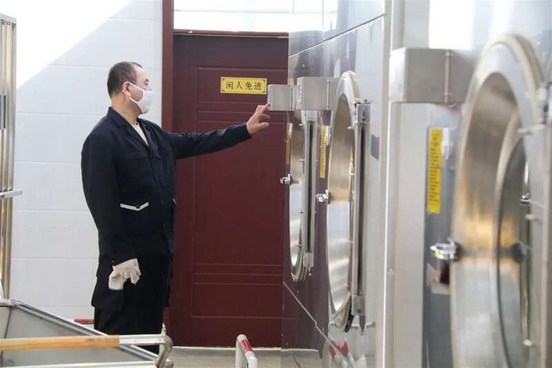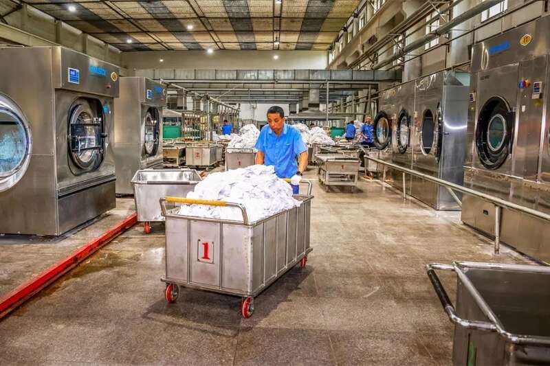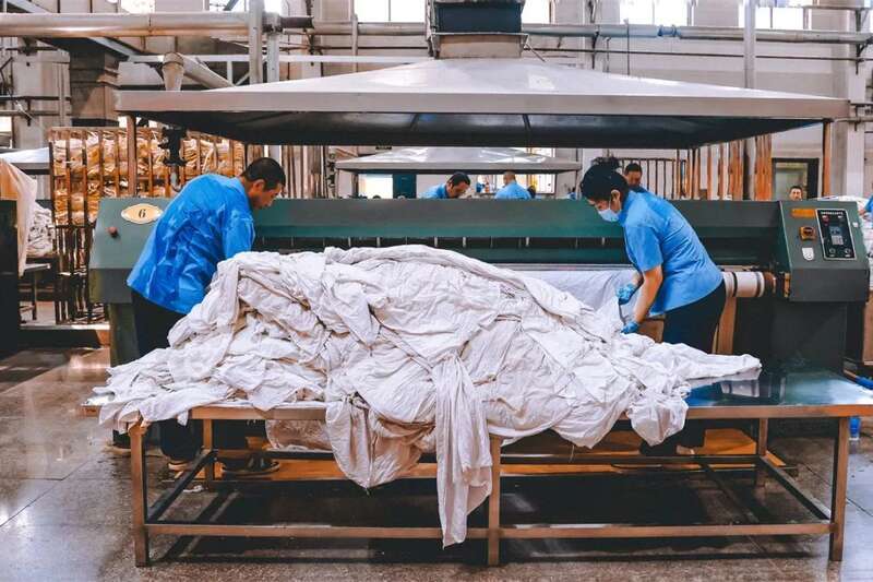 被送到洗涤车间的脏品卧具