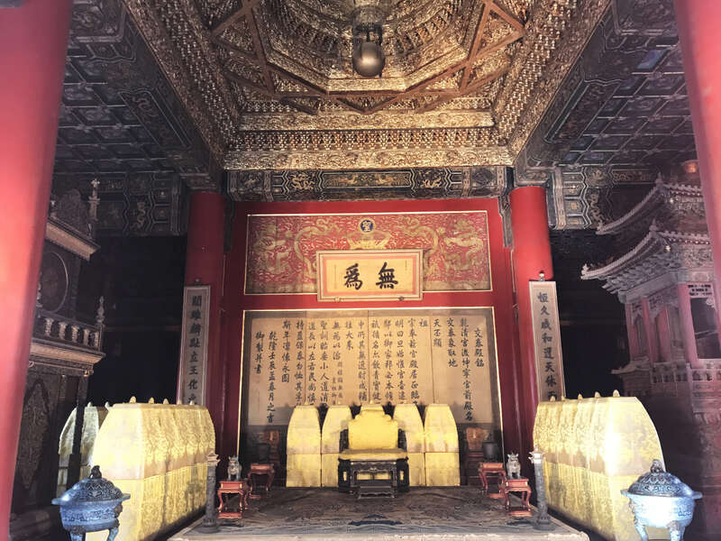 位于紫禁城宁寿宫花园西北角的倦勤斋于乾隆三十八年(1773)建成,原本是作为乾隆帝逊位之后颐养天年之所。在倦勤斋墙面装饰有大面积的通景线法画,借鉴了欧洲教堂中的天顶画进行创作。通景线法画主要由清宫画家王幼学带领画院画家及学生共同绘制而成,具有以假乱真的视幻效果。自乾隆三十九年(1774)开始绘制,历时五年,直至乾隆四十四年(1779)底才告完成。