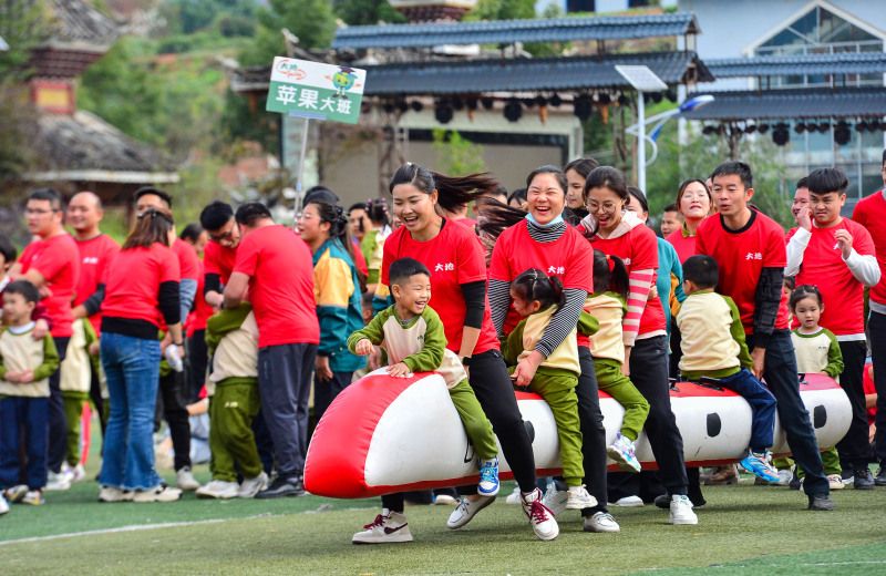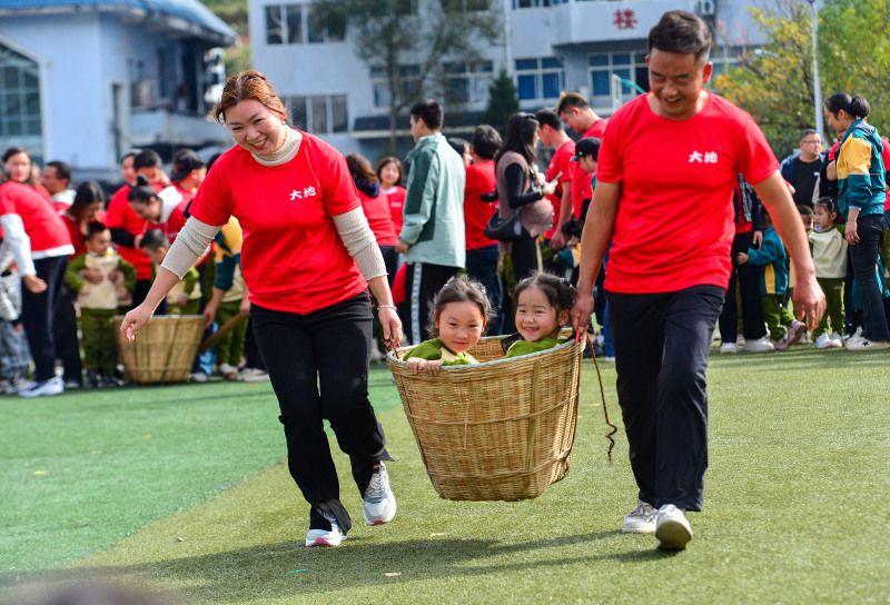 2023年11月18日,贵州黔东南,家长和小朋友们在从江县大地幼儿园参加亲子趣味运动会。在世界儿童日来临之际,贵州省黔东南苗族侗族自治州从江县大地幼儿园,为迎接“世界儿童日”,举行一场别开生面的趣味亲子运动会。通过快乐有趣的亲子运动项目,增强教师与家长和小朋友之间的情感,让小朋友们尽情抒发自己对未来的美好展望。