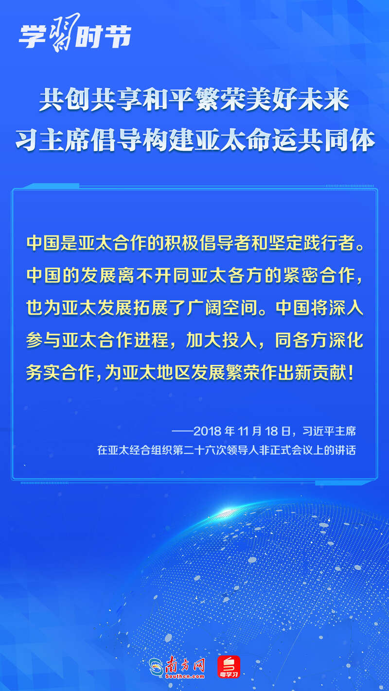 中国一直是APEC的积极参与者、贡献者,为推动建设亚太大家庭发挥了重要作用。习近平主席多次出席APEC会议,以中国主张促进亚太合作,以中国贡献推动亚太发展,以中国智慧凝聚亚太共识,多次阐述构建开放包容、创新增长、互联互通、合作共赢的亚太命运共同体的理念主张和重大意义,让我们一同学习。