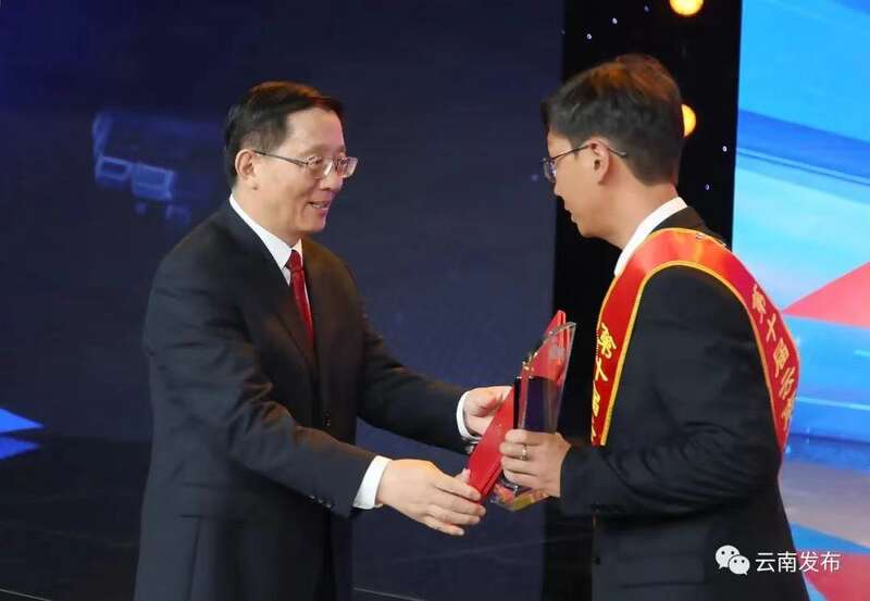 11月22日,第十届“云南青年创业省长奖”10名获奖者登上颁奖台,接受云南省委副书记、省长王予波的颁奖。