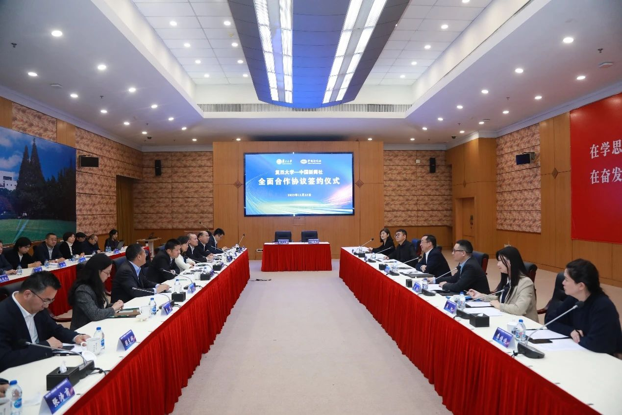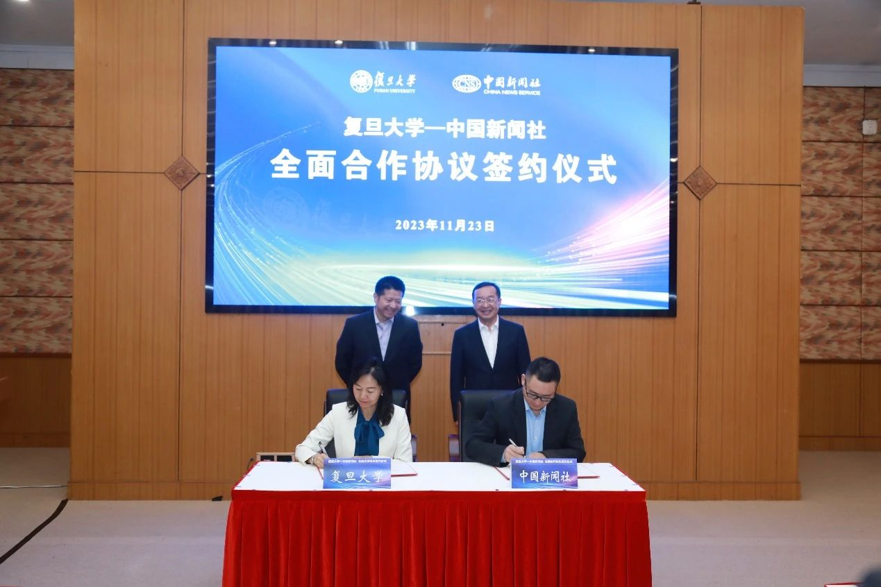 11 月 23 日下午,中国新闻社(下称“中新社”)与复旦大学签署全面合作协议。中新社党委书记、社长陈陆军,复旦大学党委书记裘新见证签约,中新社编委、上海分社社长李鹏,复旦大学党委副书记尹冬梅代表双方签约。