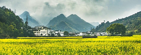 金华市武义县溪里村油菜花田。中青校媒记者 朱俊昂/摄(浙江海洋大学)