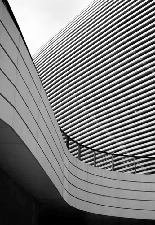 成都市东安湖体育公园百叶幕墙,墙面的线条让建筑具有流动性。中青校媒记者 闫冠璋/摄(大连外国语大学)