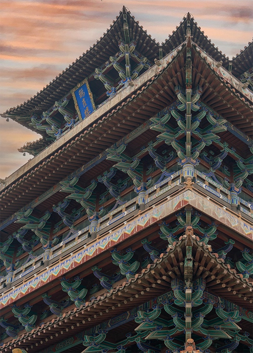 初临山西省永济市鹳雀楼,雄伟而壮观,欲想更上一层楼,品味王之涣眼中的大好河山。中青校媒记者 杨翼宾/摄(山西大同大学)