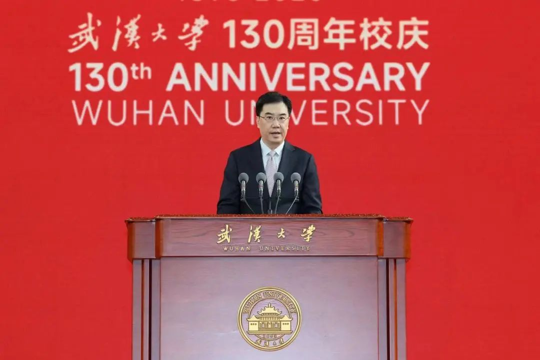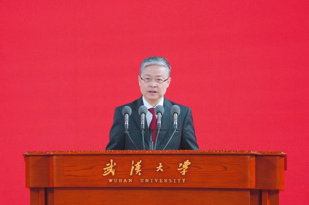 吴岩在致辞中指出,武汉大学自创立以来,始终与民族复兴同呼吸、与国家发展共命运,深刻烙印着红色印记和爱国传统。学校坚持教育报国,培养了一大批高素质专门人才,产出了一批具有国际影响力的高水平科技成果,打造了一系列哲学社会科学传世精品,为民族复兴、国家富强、社会进步贡献了武大智慧和力量。他强调,站在新的起点,武汉大学要坚定办学方向,加强党的全面领导;要坚持改革创新,走好人才自主培养之路;要强化有组织科研,支撑高水平科技自立自强;要强化服务导向,提升对高质量发展的支撑力。他希望,武汉大学坚持以习近平新时代中国特色社会主义思想为指导,深入贯彻落实习近平总书记关于教育的重要论述精神,守正创新、锐意进取,在立德树人、科研创新上取得更大成绩,在建设中国特色、世界一流大学征程上迈出新的步伐,在建设教育强国、科技强国、人才强国中展现更大作为,在以中国式现代化全面推进中华民族伟大复兴的进程中铸就新的辉煌!