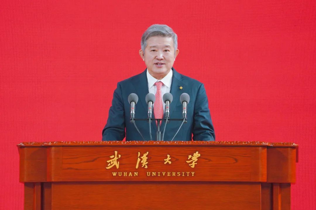 陈东升作为校友代表发言,向母校送上了最诚挚的祝福。他回忆了在母校求学的青葱岁月,分享了四十年来与母校相伴的深厚感情。他表示,不管身在哪里,离开多久,校友们的根永远都在珞珈山。回馈母校、建设母校、让母校变得更好,是每位珞珈学子最朴素的情感和愿望。未来,全体校友将一如既往、持续不断地为母校的发展贡献力量,共同为中国式现代化建设和中华民族伟大复兴作出武大贡献。