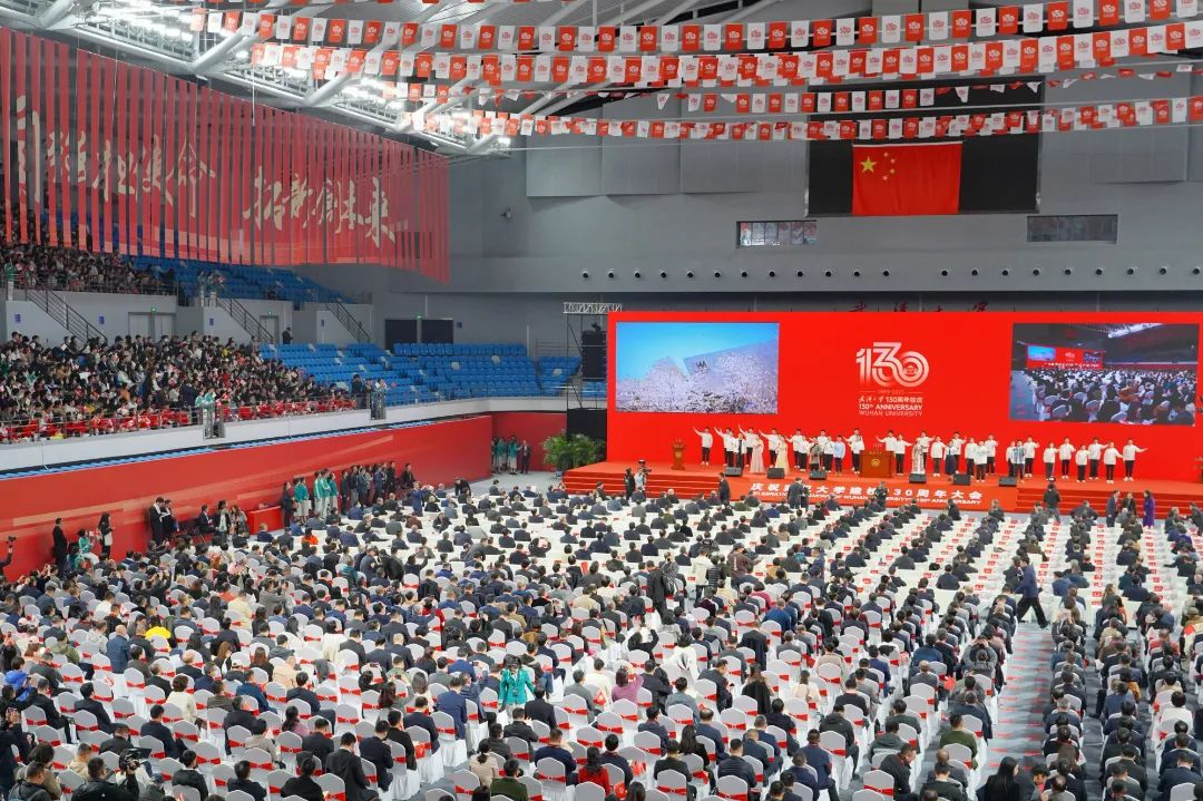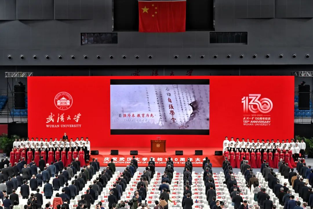 在全体合唱《武汉大学校歌》的歌声中,武汉大学建校130周年庆祝大会胜利落幕。