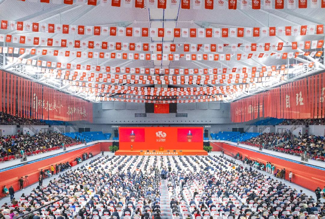 巍巍珞珈传薪火,百卅黉门启新篇。11月29日上午,武汉大学建校130周年大会在卓尔体育馆隆重举行。各级领导、各界嘉宾、国内外高校代表、海内外校友代表欢聚一堂,以“自强担使命,拓新创未来”为主题,共同庆祝武汉大学建校130周年。