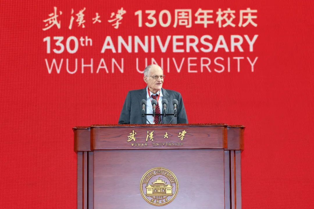 诺贝尔经济学获得者托马斯·萨金特致辞。他表示,武汉大学是一所蜚声中外的知名学府,历史悠久、底蕴深厚,学生才华横溢、成就斐然,在国际上享有极高的声誉。他分享了与武大校友、学者交流学习的故事,赞扬了武汉大学人才培养的卓越成效。他指出,武汉大学在经济学与数学交叉融合方面做出了许多有益探索,为中国和世界培养了许多优秀的经济金融学人才,如今武汉大学经济学科发展势头良好,引进了许多优秀的青年学者,研究质量显著提高,可喜可贺。他期待武汉大学能够产出更尖端的研究成果,也希望在未来能与武大在交流合作方面探索更多可能。